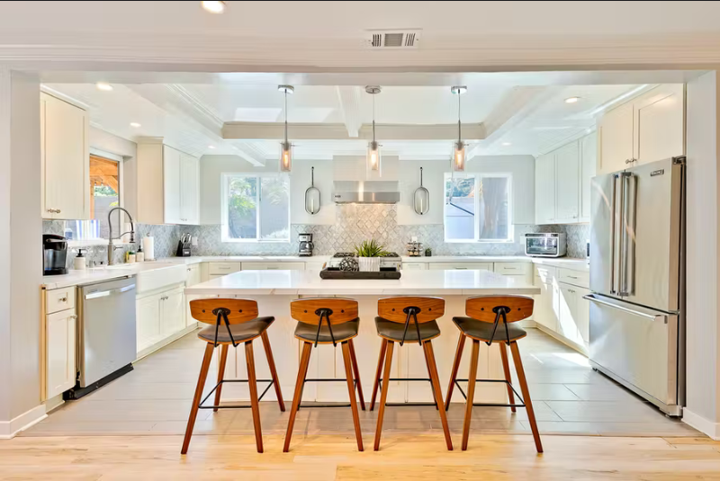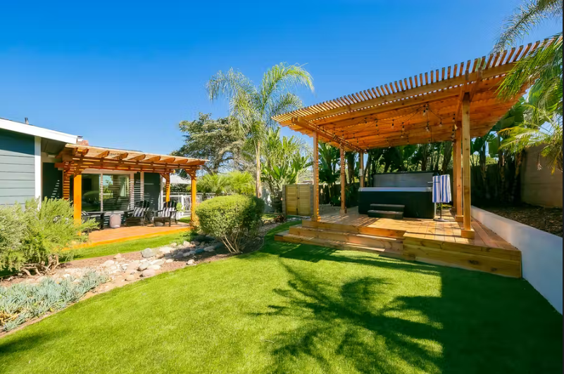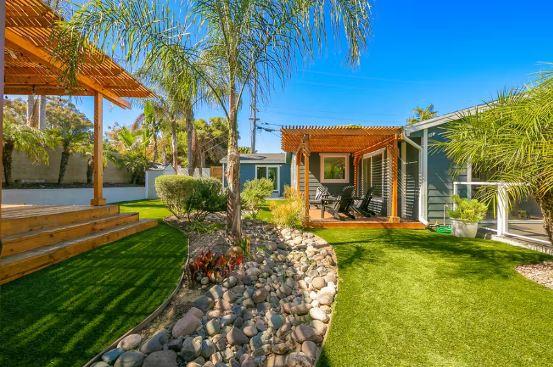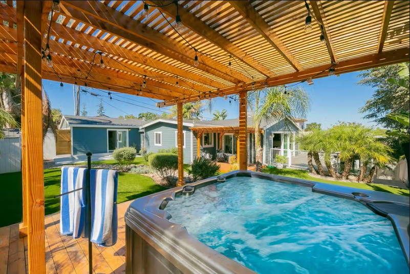 Welcome to this newly remodeled 4-bedroom, 4.5-bath, 1-story, approximately 2500 sq. ft. charismatic La Jolla Shores beauty. Surrounded by a resort style front yard with plenty of patio lounging areas for your outdoor enjoyment and relaxation. Enjoy the therapeutic sauna and private Jacuzzi on property. A bonus casita with its own kitchen and bathroom provide the additional space you are looking for on your vacation.