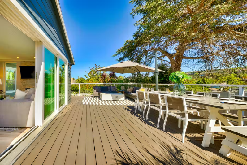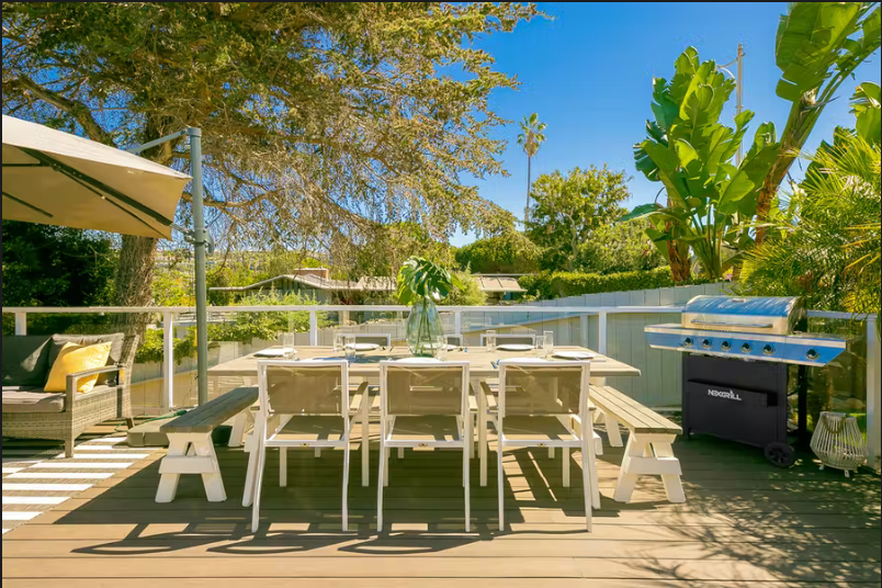 This rare find is just a short walk to the beach – featuring a beautiful, spacious open deck which is easily accessible through the great room. Here you can dine al fresco under the umbrella and relax and recharge in a comfortable outdoor table with room for 10 people. An outdoor barbecue grill makes cooking pleasurable with the ocean breeze.