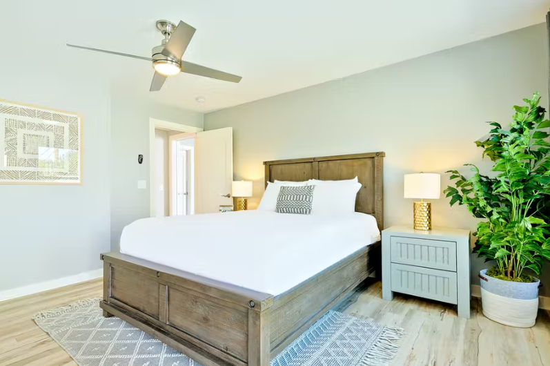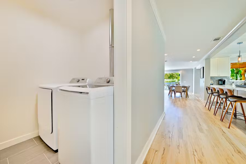 There is also an inside dining table that seats 8, which is right next to a beautiful modern kitchen with a kitchen bar and 4 high-top tools. It is easy to satisfy your culinary desires here as it has all the appliances and amenities you need to create meals and snacks for everyone. Just add the food and have fun enjoying one another and this lovely vacation spot.