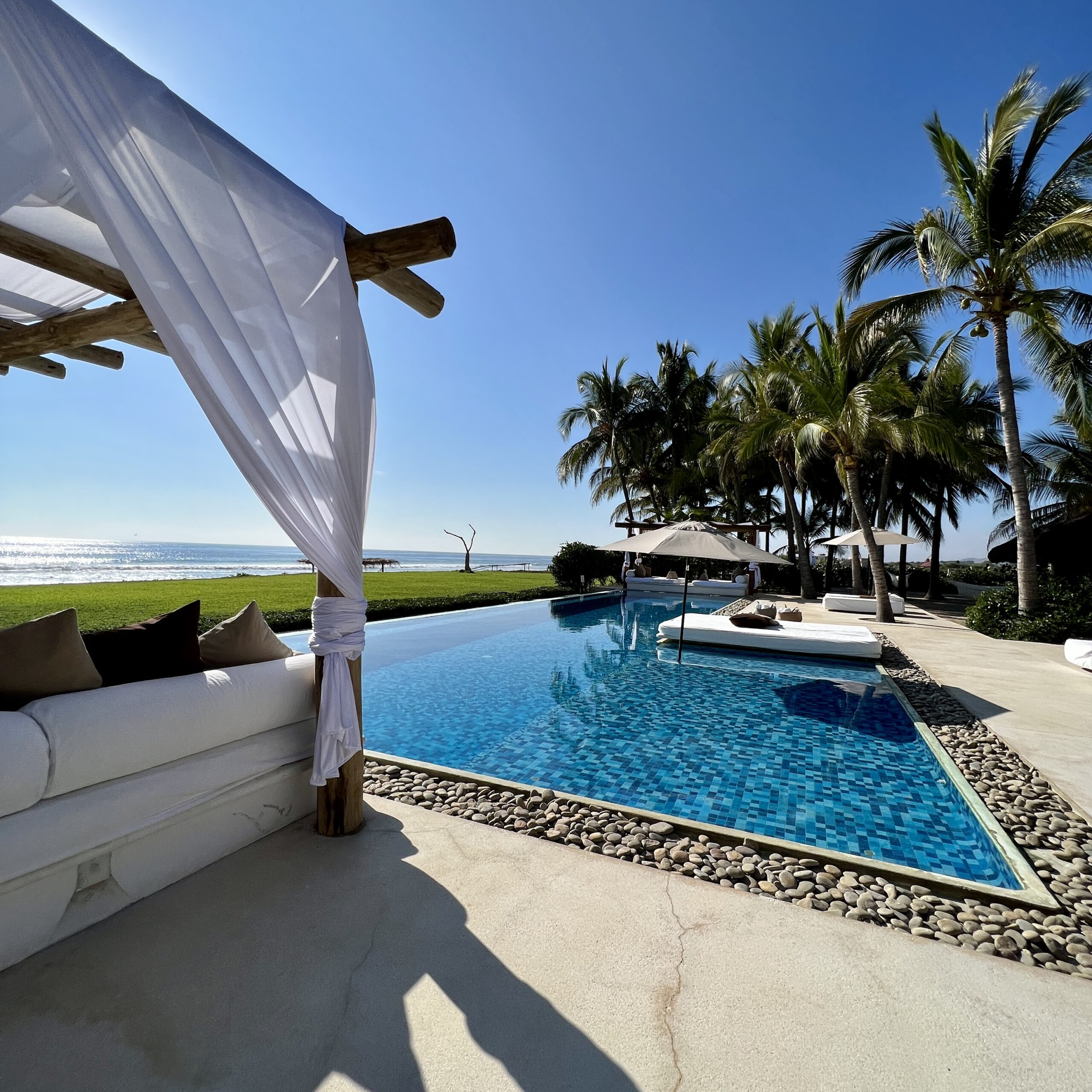 Casa Inspiración is a private oceanfront estate on Mexico’s Pacific Coast, designed for exclusive stays in complete privacy. Set directly on the beach, the property features independent oceanfront rooms, expansive open-air living spaces, and full-service staffing, offering a refined yet relaxed barefoot-luxury experience for families, retreats, or intimate gatherings. Rates may vary throughout the year.