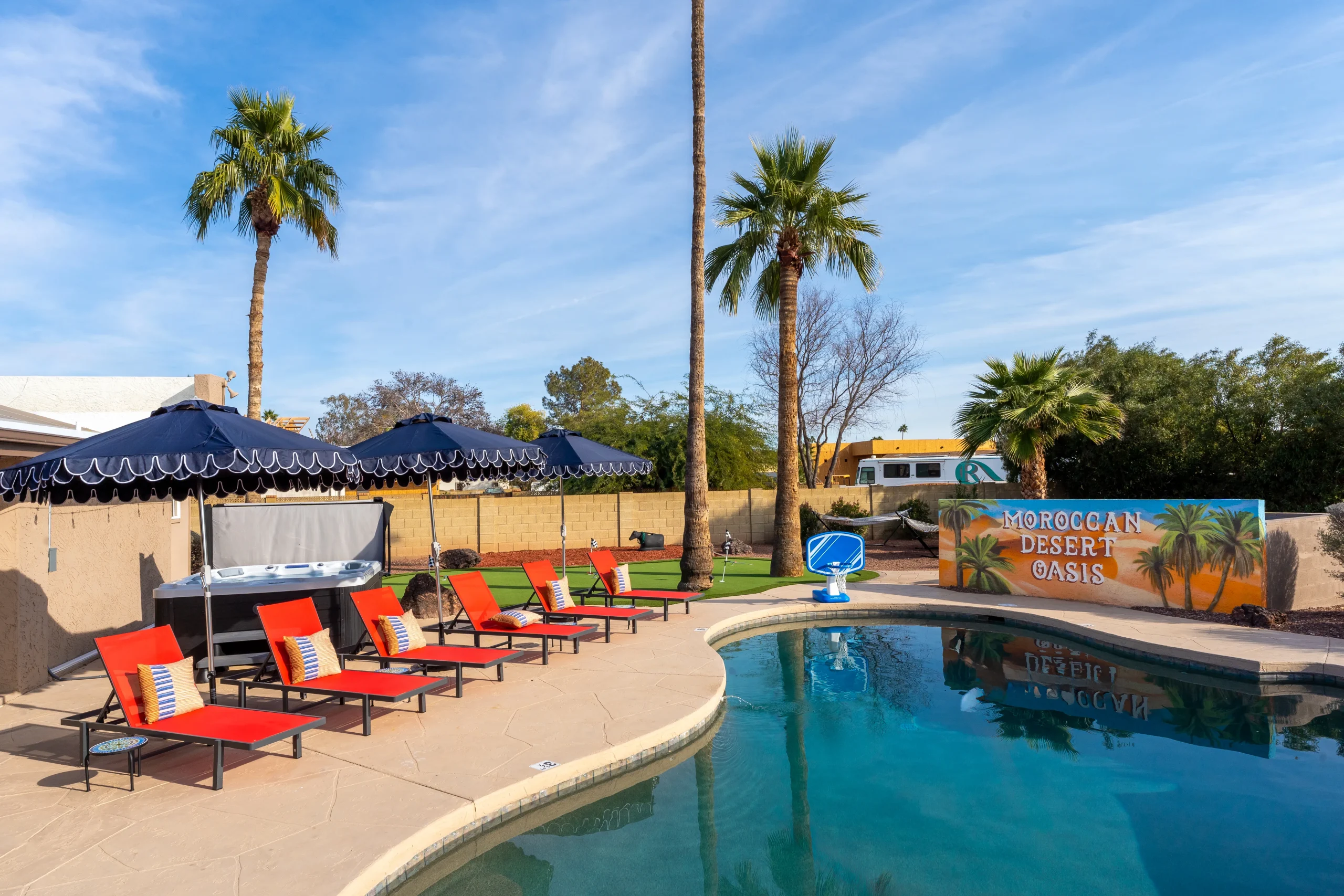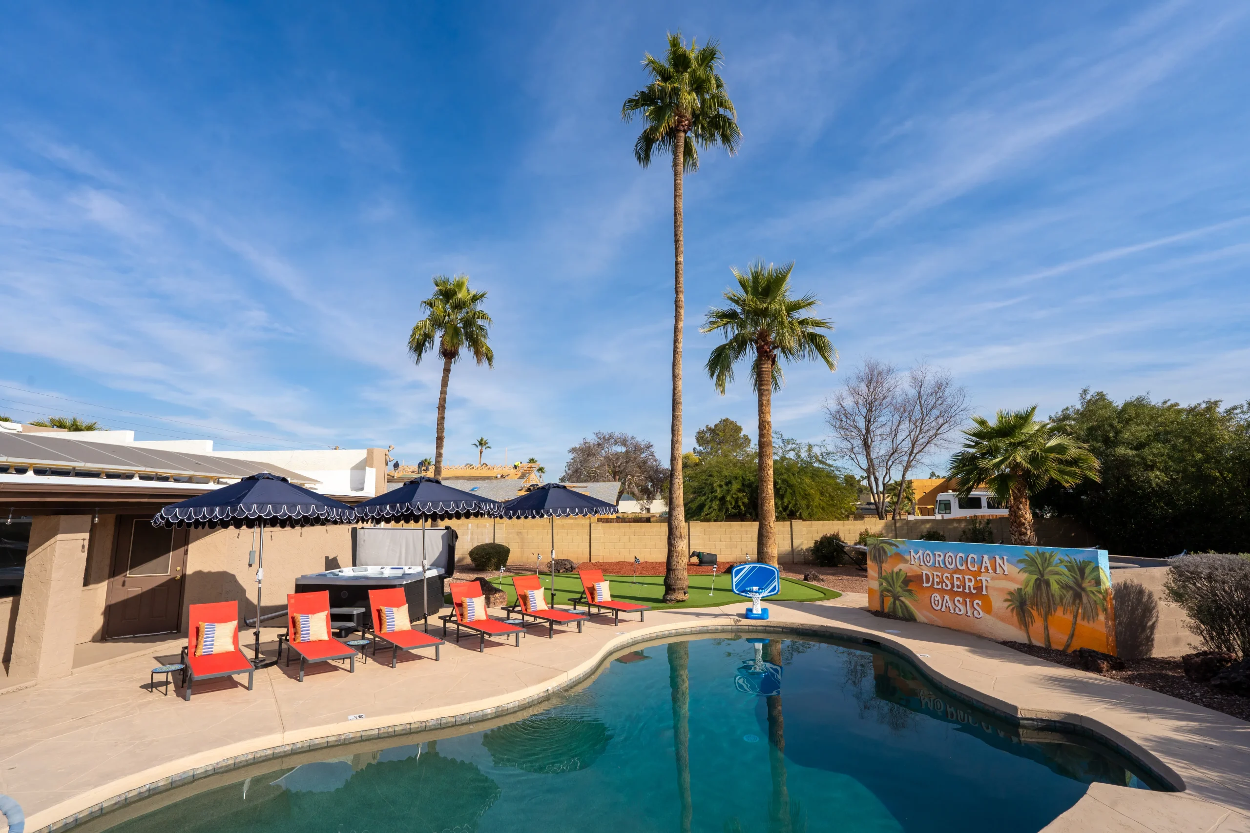 Welcome to Citrus Oasis, your ultimate escape! This breathtaking 8-bedroom, 6-bathroom retreat with a private casita is perfect for up to 24 guests, blending fun, comfort, and relaxation. Dive into a backyard oasis packed with games, a movie theater, and endless entertainment! Whether you’re lounging by the private pool, challenging friends on the sports court, or enjoying the outdoor dining area, Citrus Oasis has it all. Just minutes from top attractions, dining, and shopping, it’s your dream destination to unwind, explore, and make unforgettable memories!