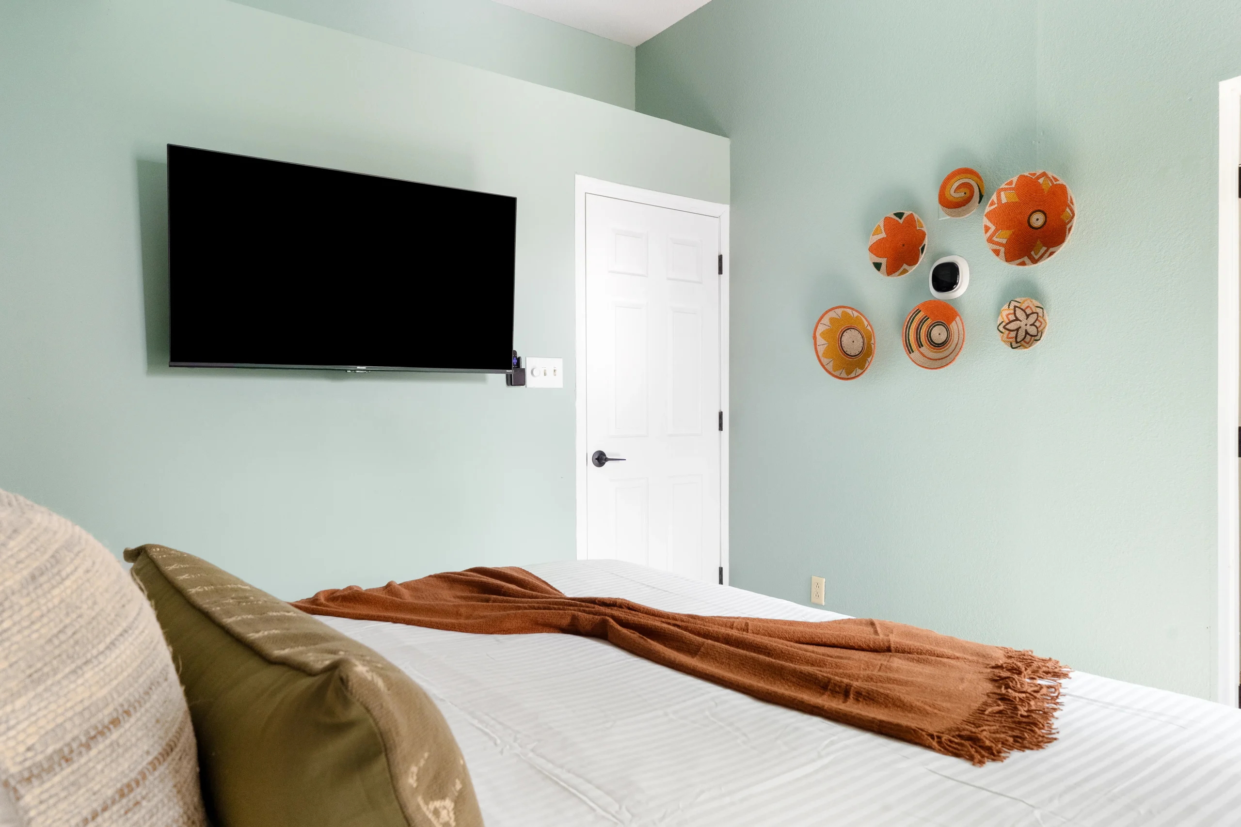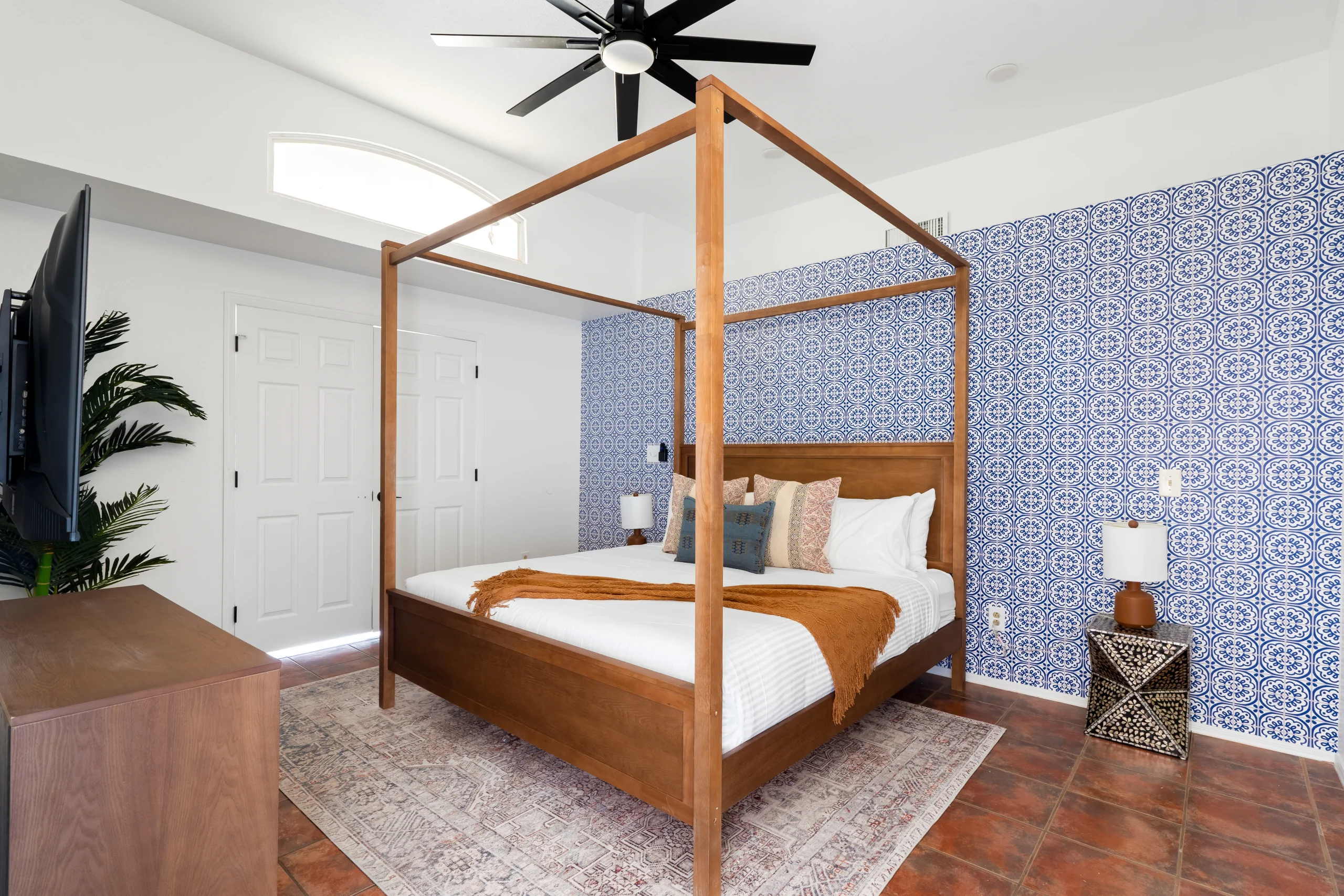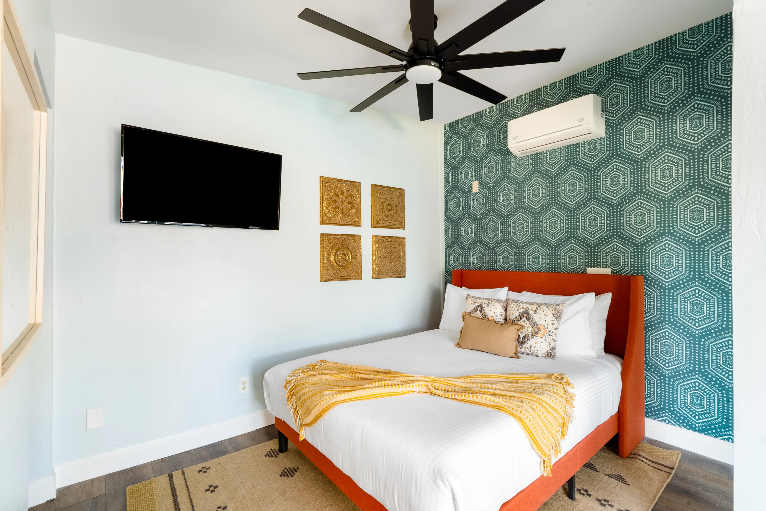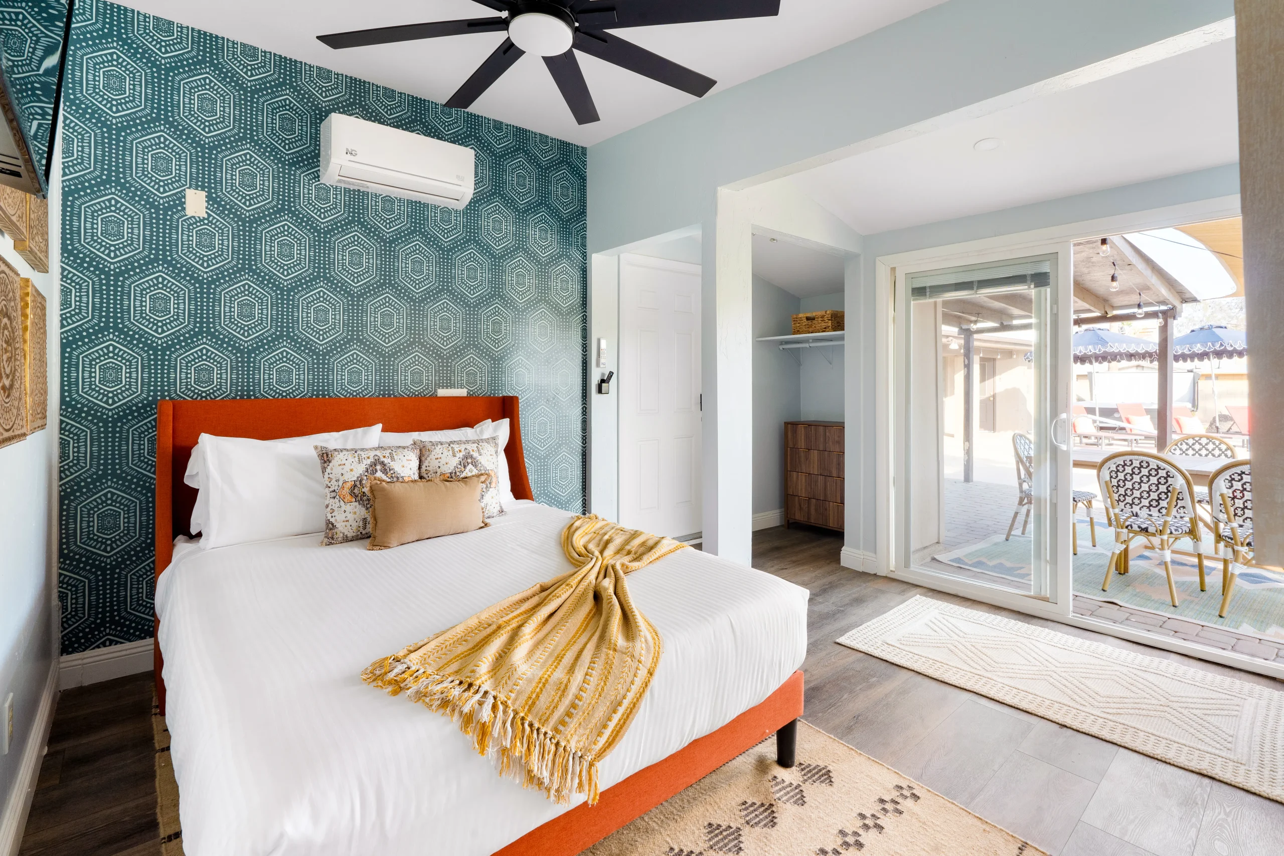 Bedroom 5 (Casita): Queen bed, ensuite bath, direct outdoor access