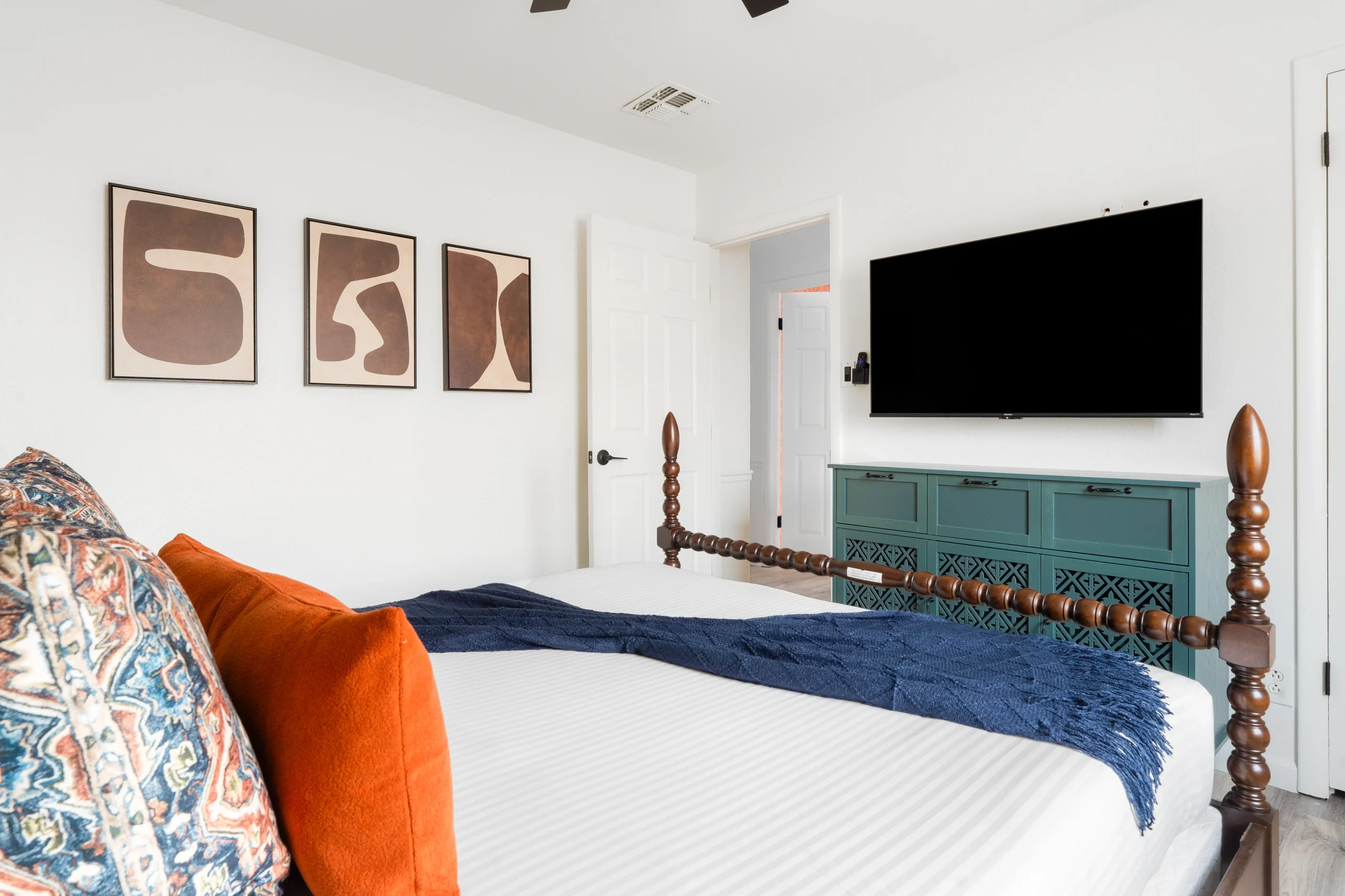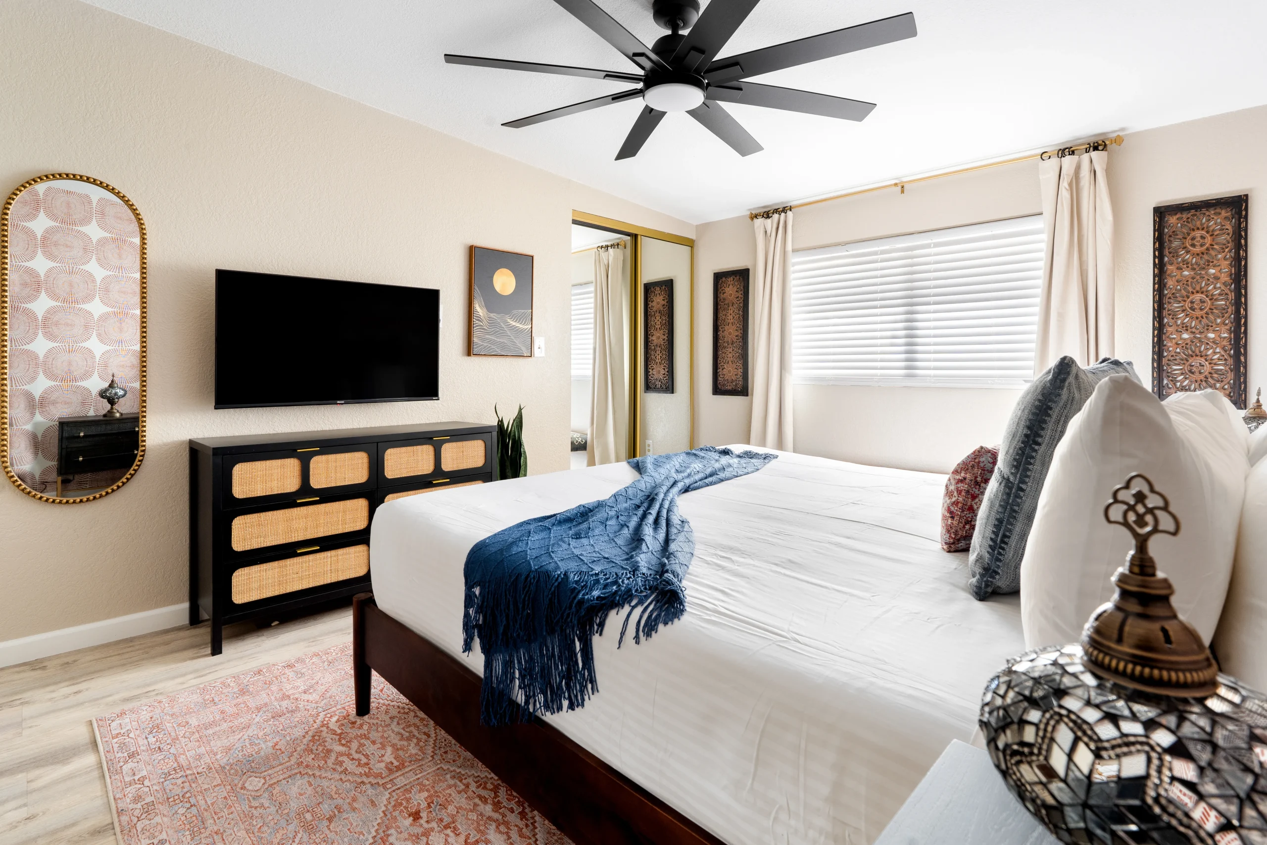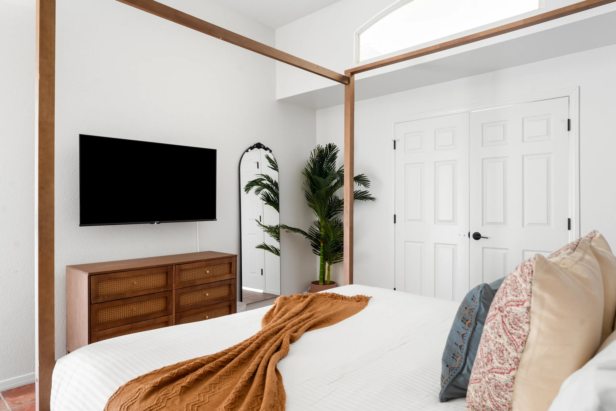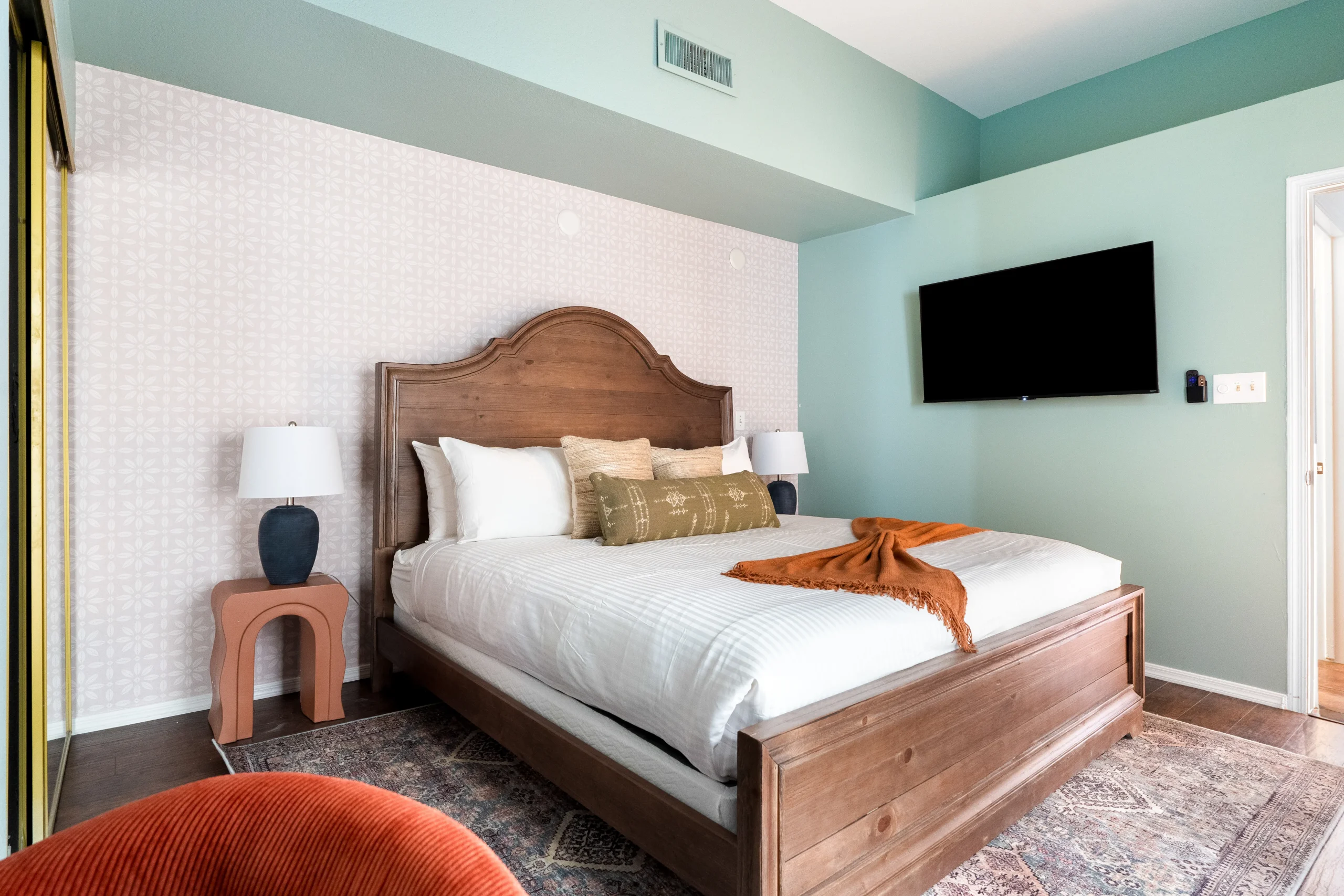 Bedroom 5 (Casita): Queen bed, ensuite bath, direct outdoor access