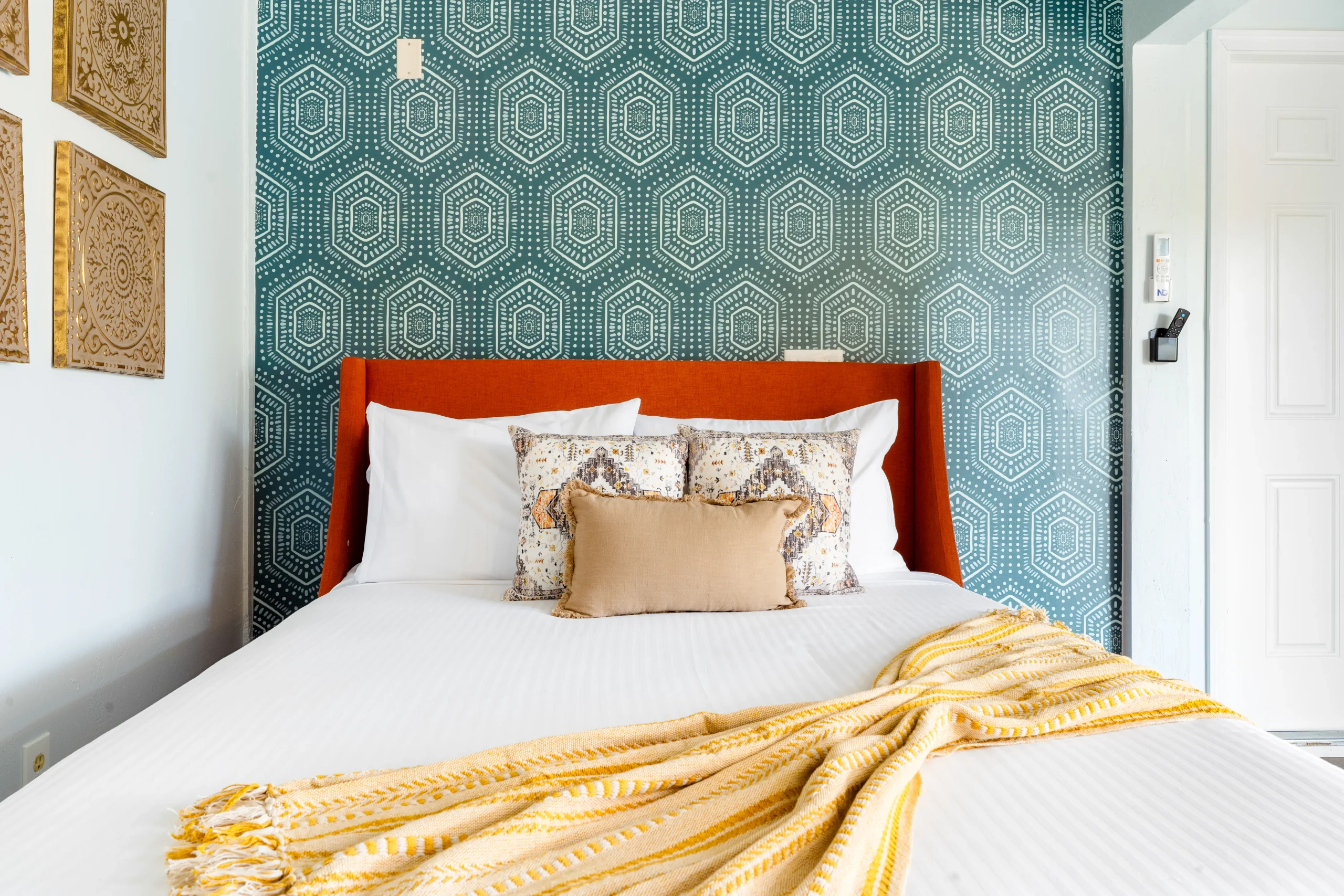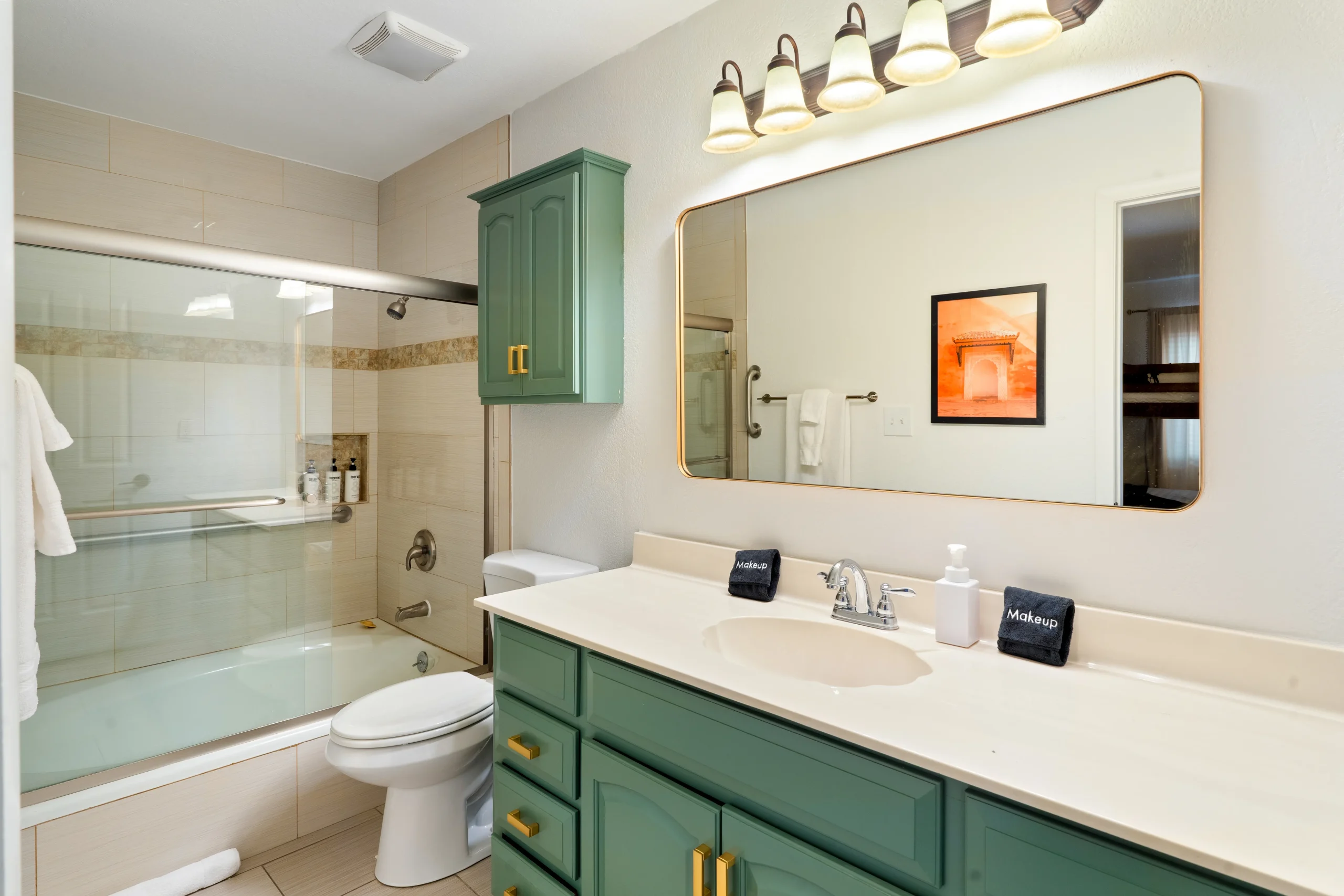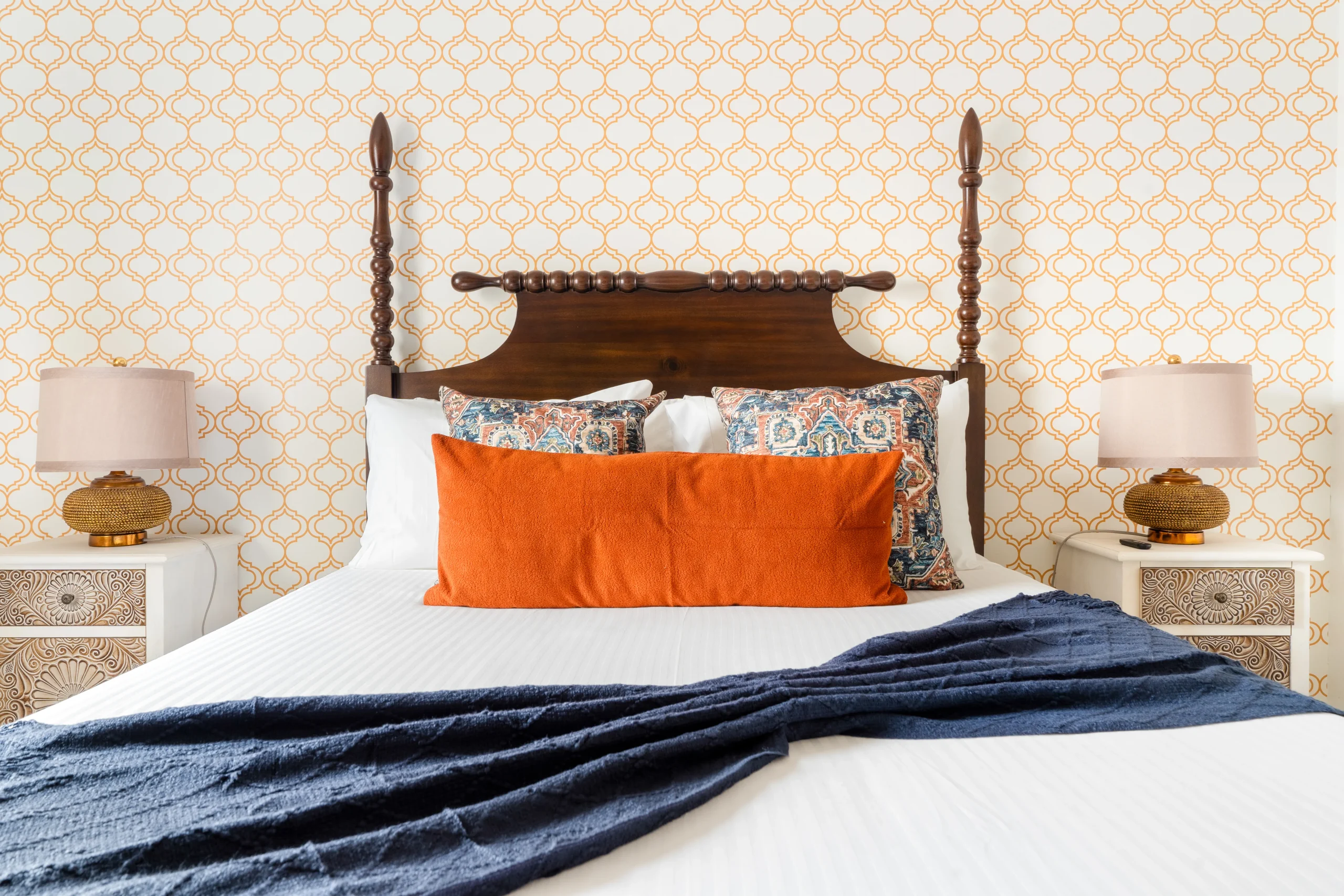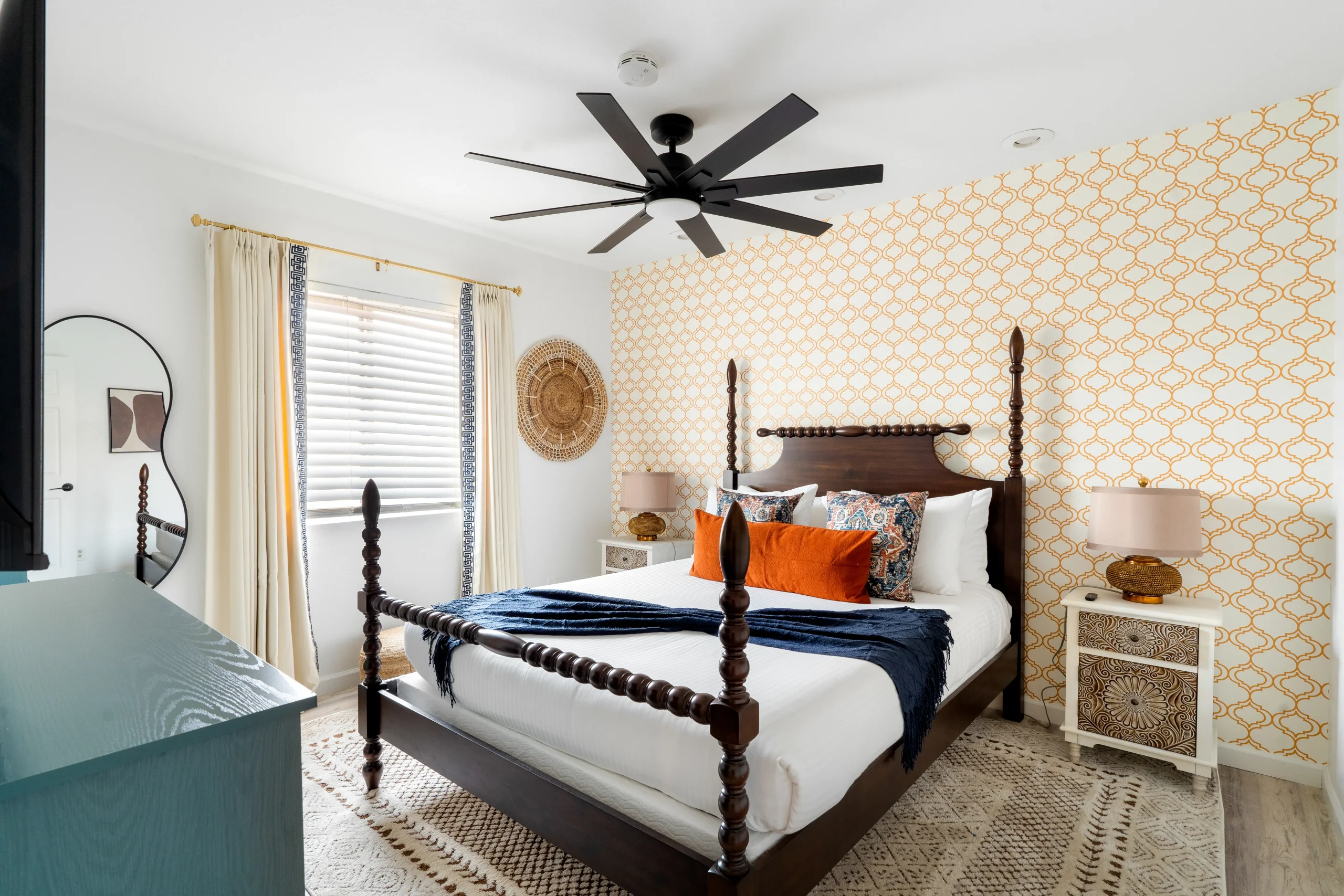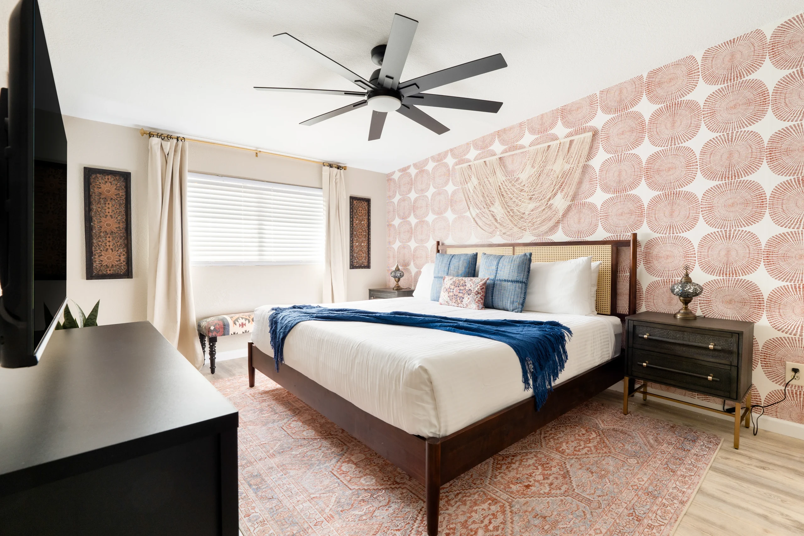 Bedroom 5 (Casita): Queen bed, ensuite bath, direct outdoor access