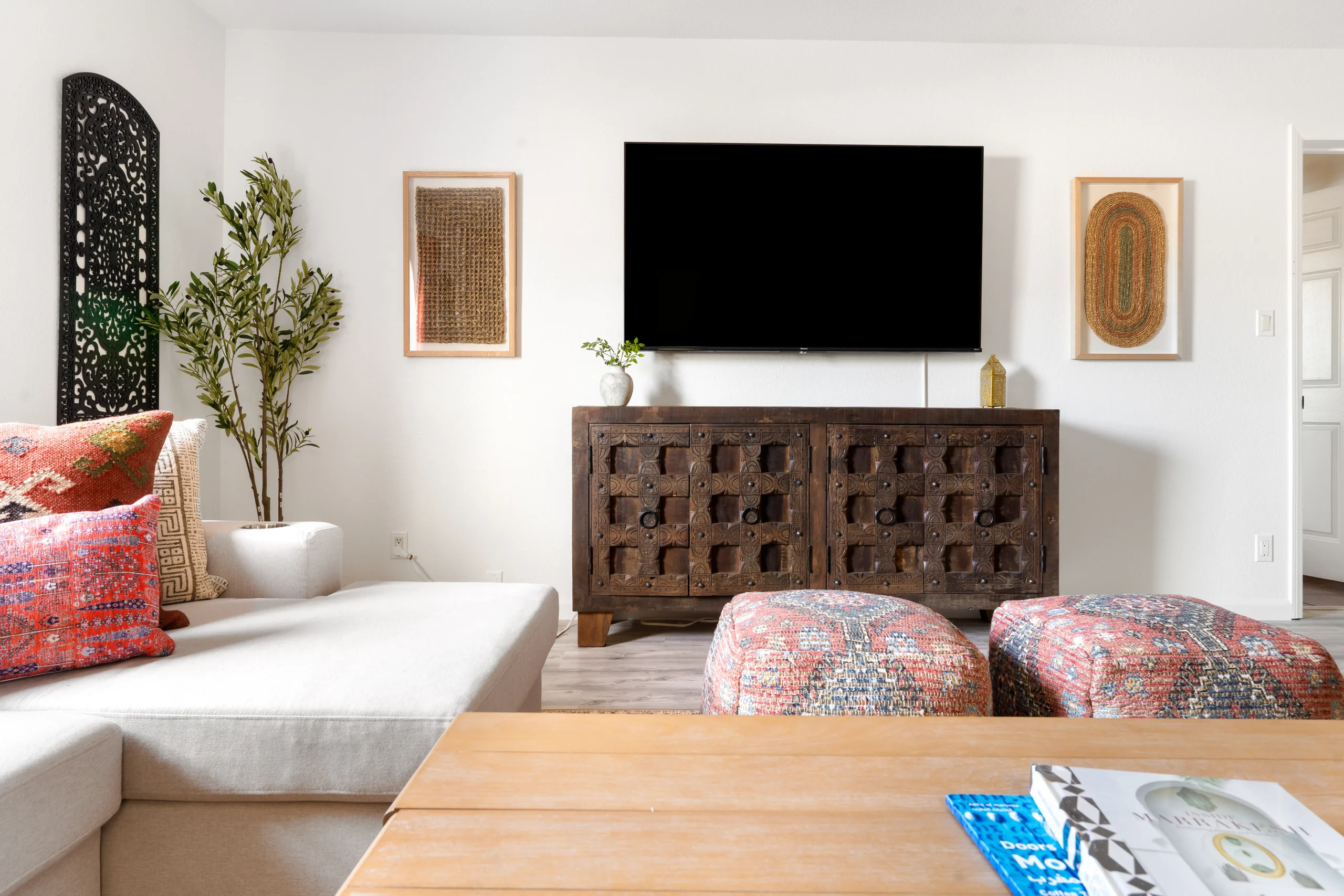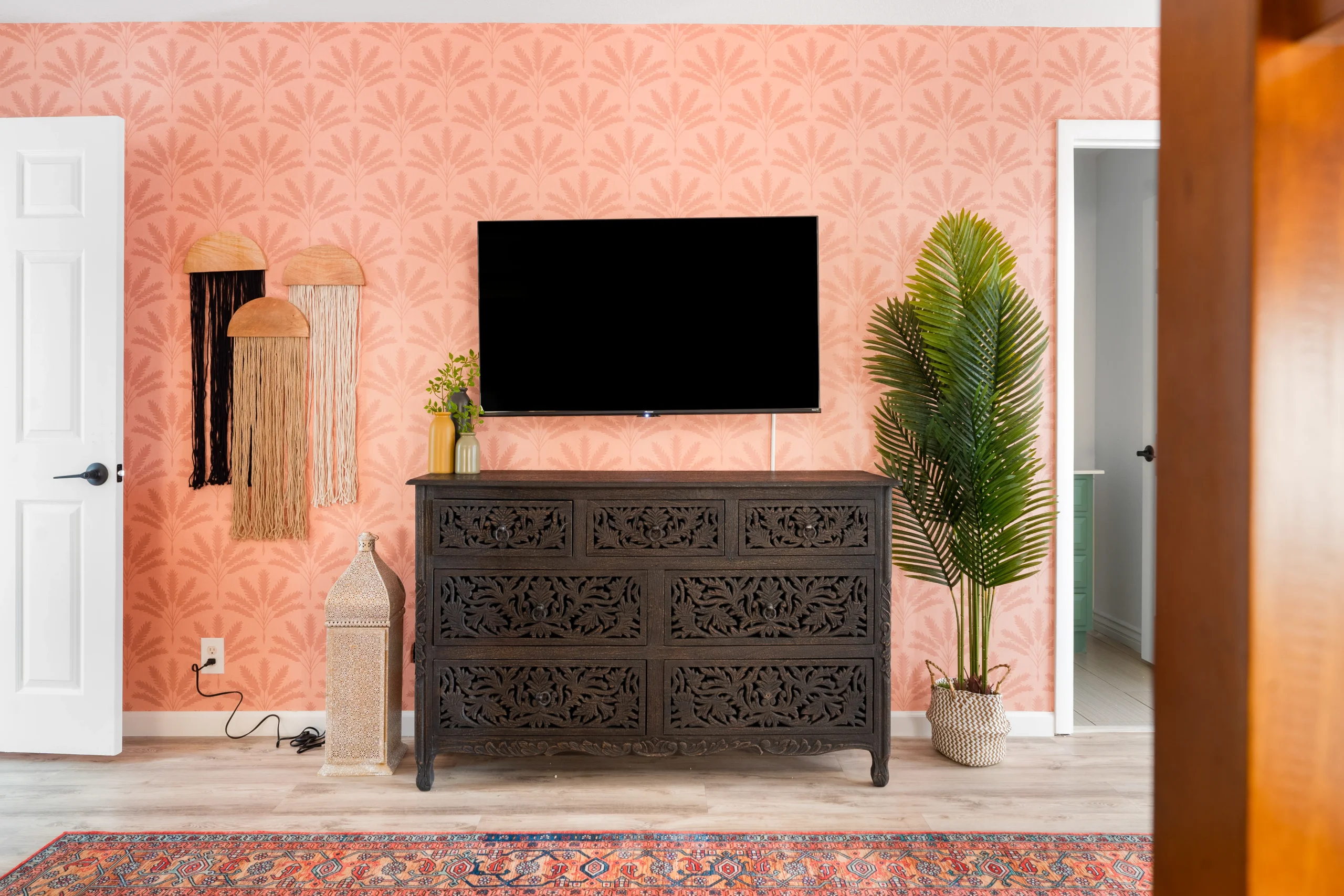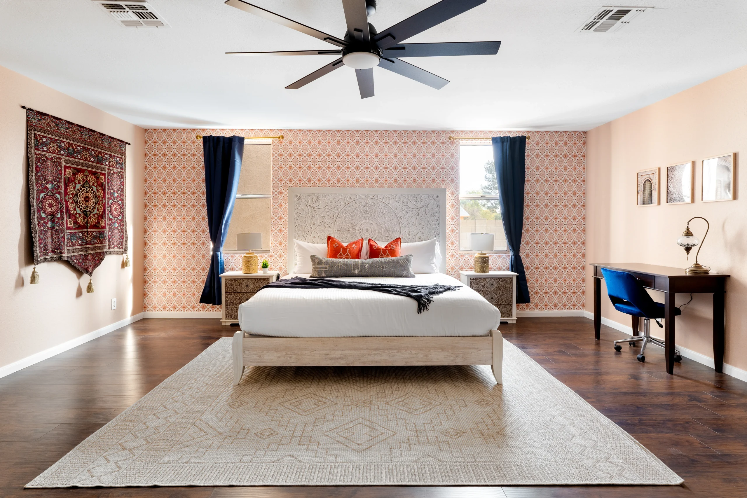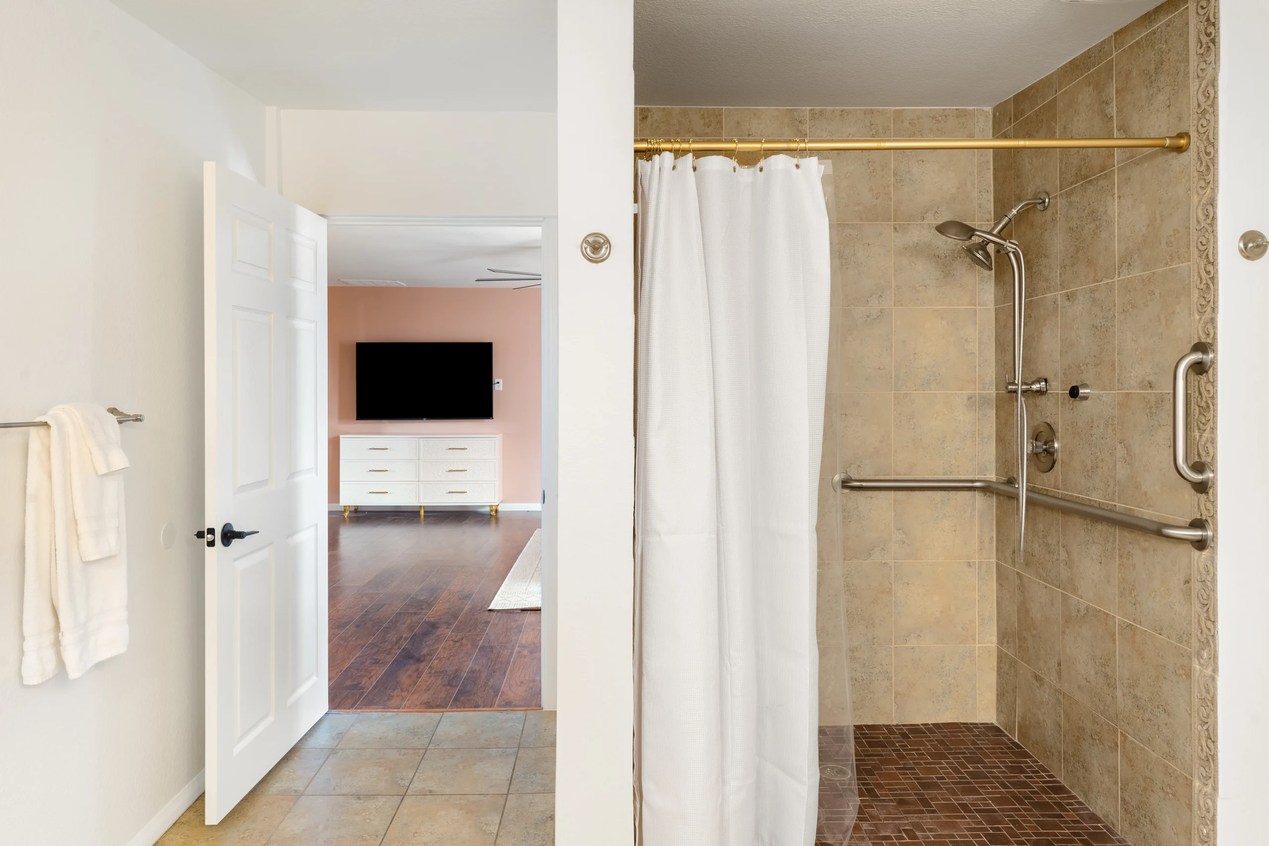 Bedroom 5 (Casita): Queen bed, ensuite bath, direct outdoor access