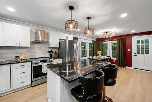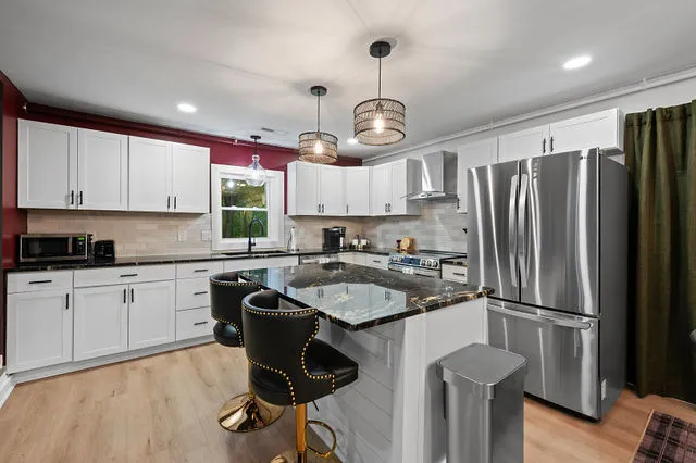 Step into an expansive living area where modern elegance meets mountain charm. The open-concept design, soaring vaulted ceilings, and a stunning black brick fireplace create an inviting space that’s perfect for gathering after a day of adventure. The gourmet kitchen, with its sleek granite countertops and top-of-the-line finishes, is a dream for anyone who loves to cook or entertain.