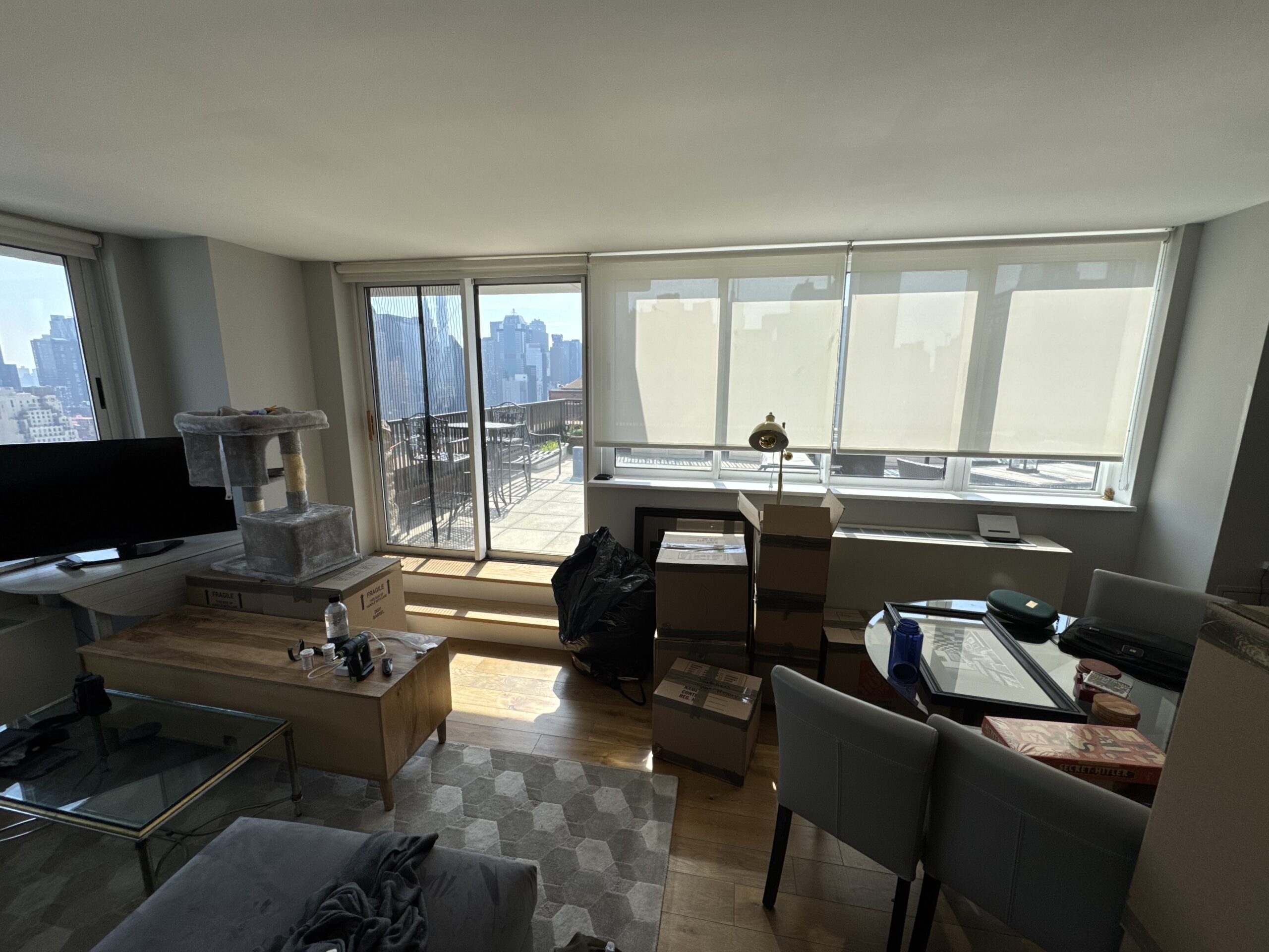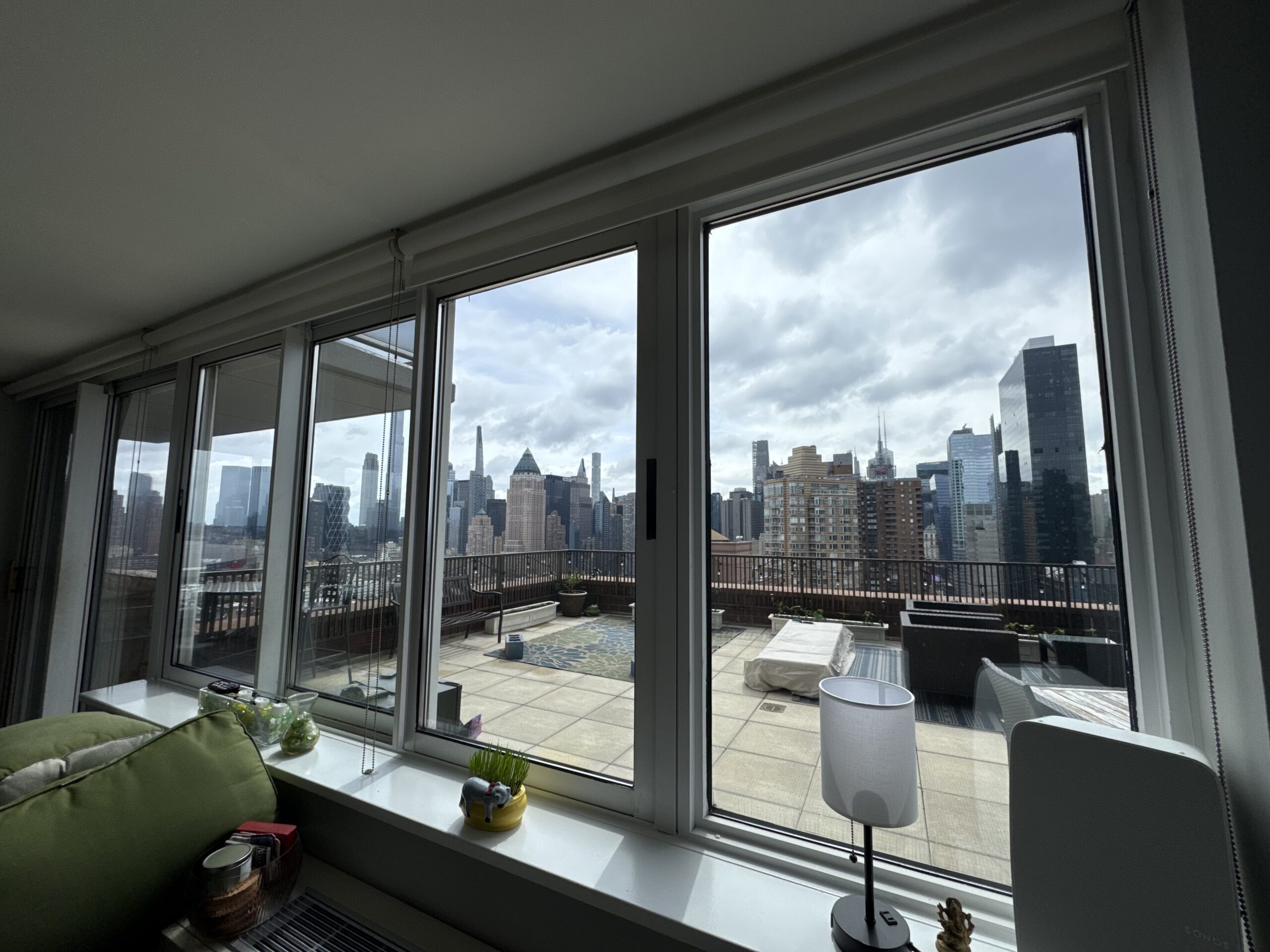 Perched high above the Hudson, this 38th floor penthouse offers a rare combination of scale, privacy, and light in one of Manhattan’s most dynamic neighborhoods. Floor-to-ceiling windows frame sweeping river and skyline views, while a spacious 500sqft private terrace extends the living space outdoors—ideal for entertaining, dining, or quiet moments above the city. The thoughtfully designed interior features clean architectural lines, generous ceiling heights, and modern finishes that create an airy yet refined atmosphere. Set within an amenity-rich, full-service building with a tree-lined circular driveway, this residence provides a gracious sense of arrival and resort-like comfort, all just moments from the energy, dining, and culture of Hell’s Kitchen.