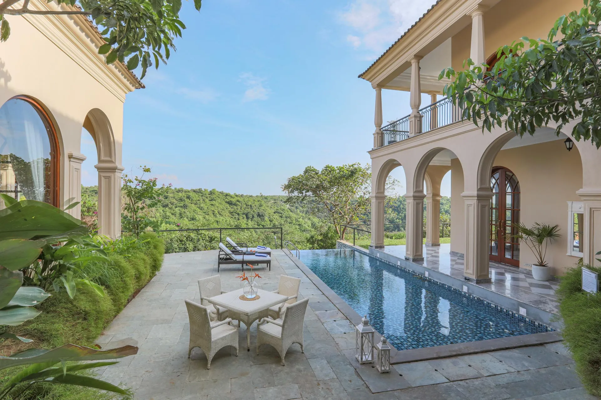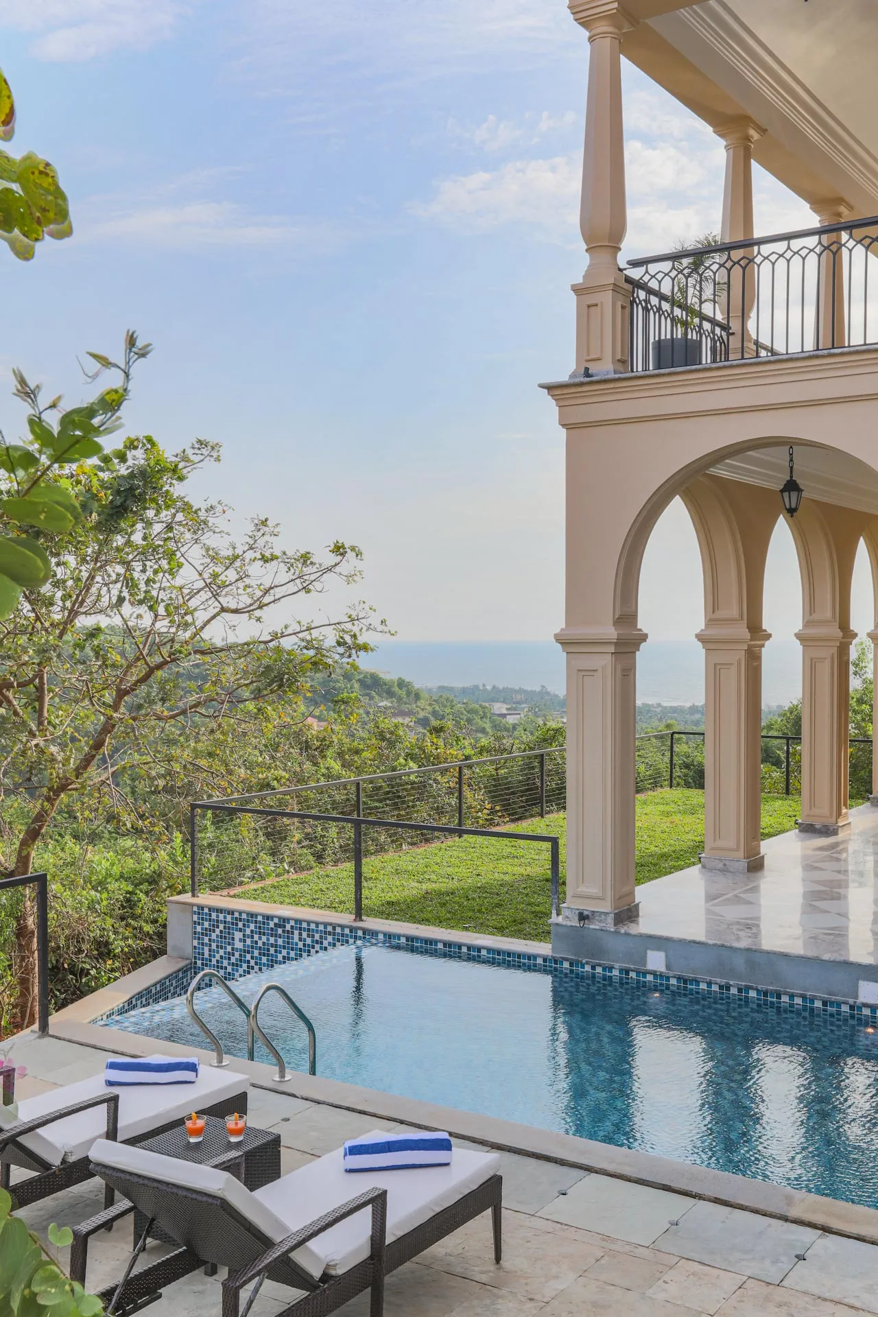 Overlooking the shimmering sea at Ashwem, Goa, Sacri Borod Hill 8 is a magnificent Mediterranean style villa that will take your breath away. Enveloped by dense greenery and comprising 5 spacious bedrooms, the luxurious home is the ideal space to unwind in, away from chaotic city life. With a private pool, a games room and the proximity to the beach, the villa lends itself perfectly to a memorable getaway with friends or family.
