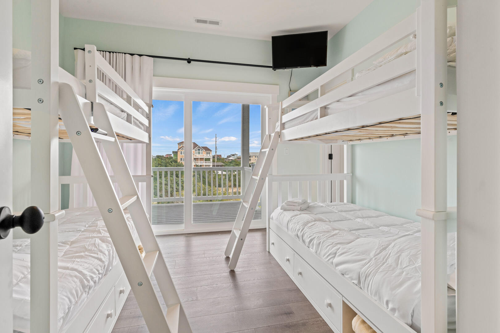Step on up to the second level, to find more bedrooms. It will be hard to decide between the 3 beautifully decorated King En Suites – one with deck access. For the kids – young or old – there is a Bunk En Suite with two twin bunks. Anyone who stays in this room will love having the bathroom in the En Suite.