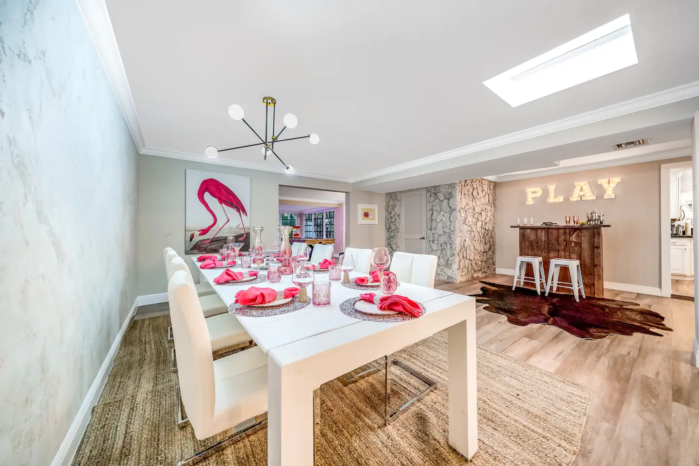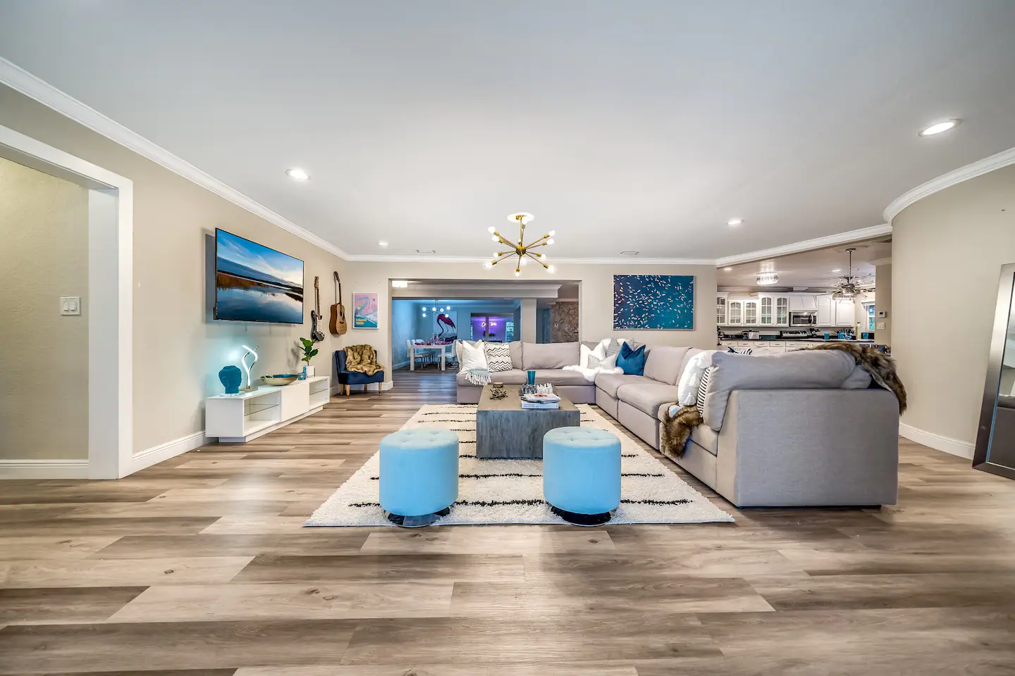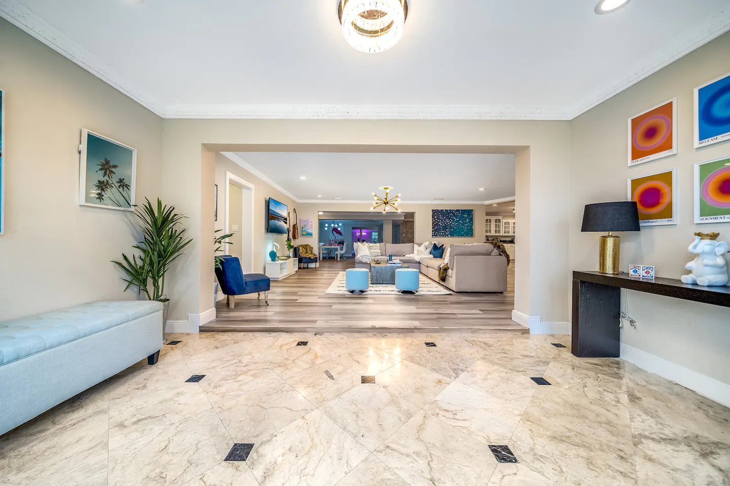This stylish and spacious home has everything you need for your dream getaway. The oasis backyard has a huge pool with activities for the kids, the landscaping is true Florida tropical. The interior is designed in a modern style with so much spacious for multiple families. You’ll never want to leave the home…but if you do you are minutes to the ocean beach, and minutes to Wilton Manors and downtown Fort Lauderdale for restaurants and other entertainment. The neighborhood is beautiful, safe, and close to all modern amenities.