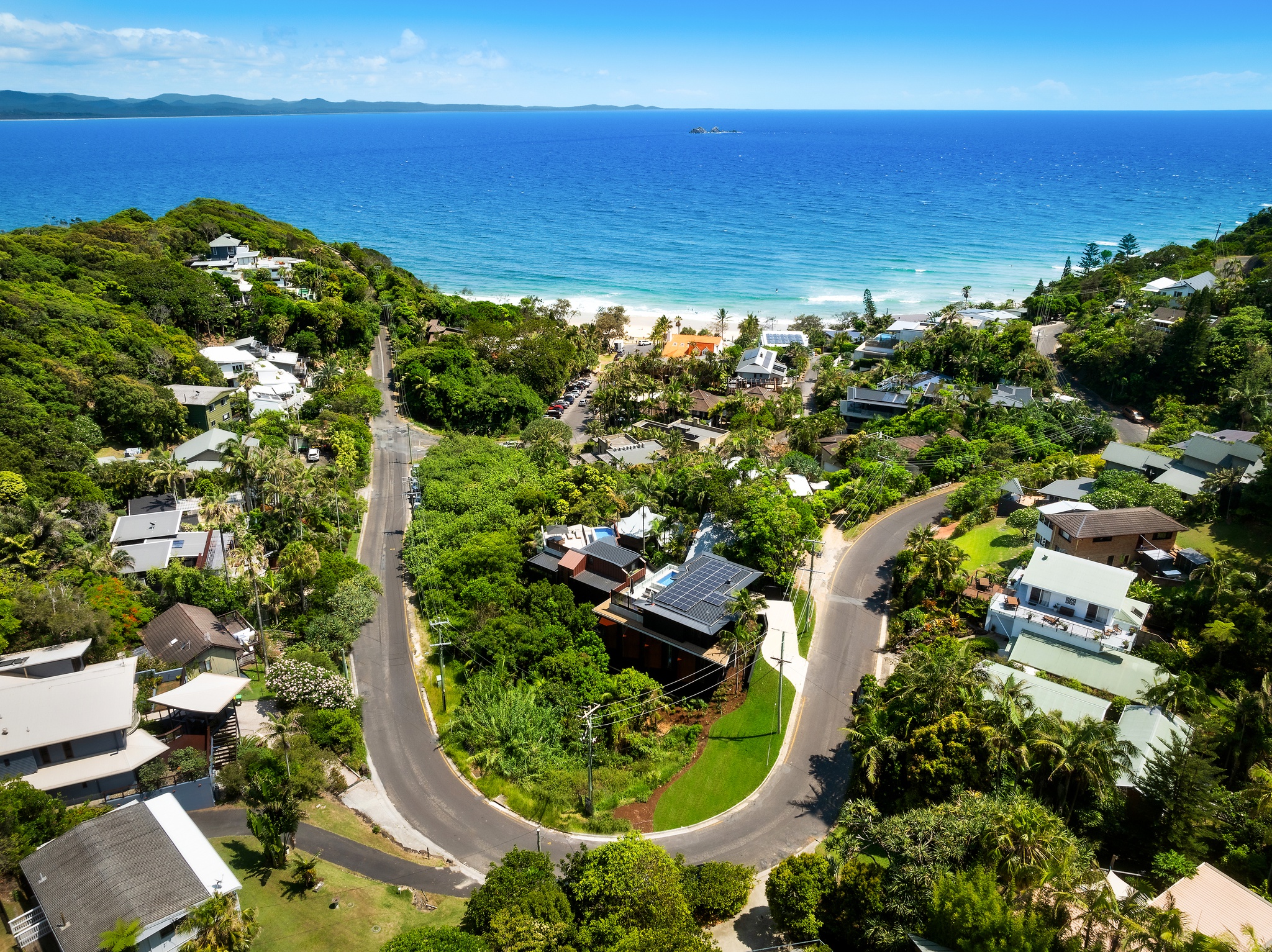 Drawing inspiration from the verdant surrounding landscape, the Wategos Estate rental homes provide a tranquil sanctuary in a breathtaking location.